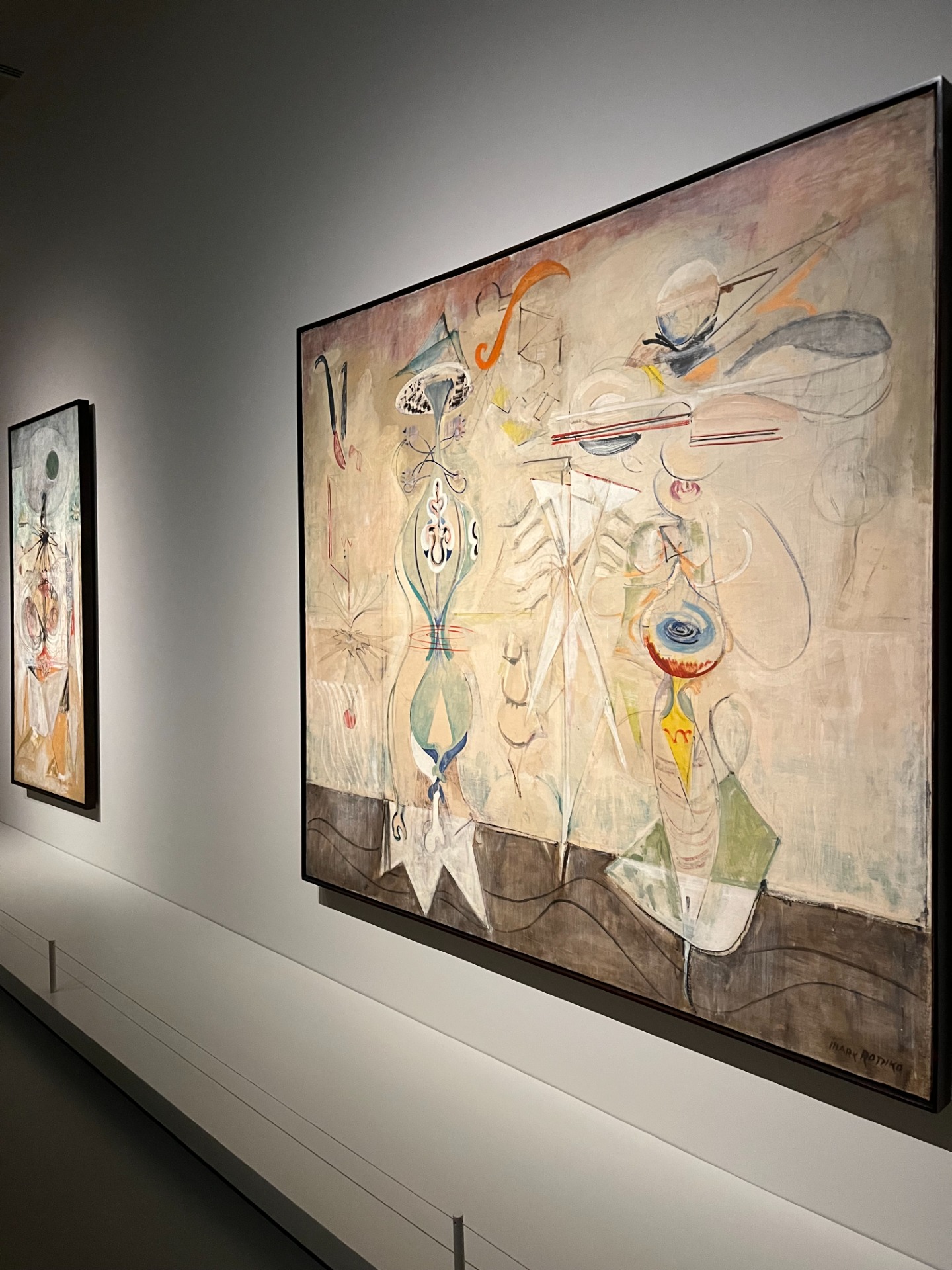En avançant dans la première galerie, nous sommes plongés dans la mythologique. En effet, en 1940, Mark Rothko reprend la peinture avec ses amis. Ils veulent aboutir à la création d'un "mythe contemporain". En plein Guerre Mondiale, il fait référence aux mythologies et tente ainsi de créer un langage universel en réponse à l'extrême violence.