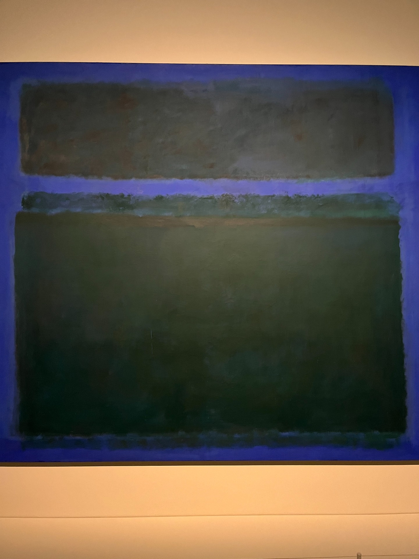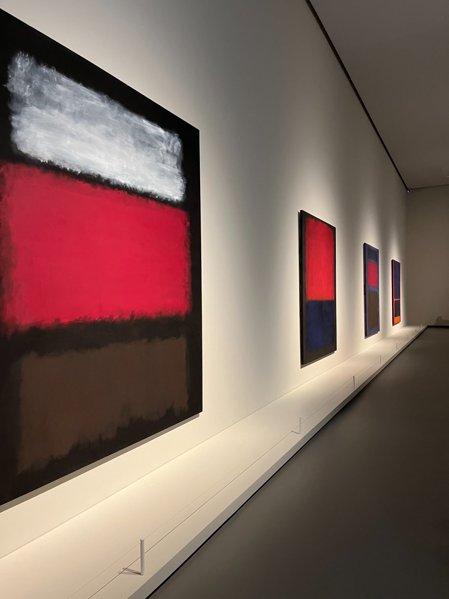 Dans les années 60, Mark Rothko continue à réaliser des tableaux individuels. Il déclare que chacun d'eux propose une expérience immersive, à travers un "état d'intimité". Le spectateur est donc un co-créateur de l'œuvre : nous sommes invités à "prendre le risque" et à "entreprendre le voyage", au risque de "passer réellement à côté de l'expérience essentielle du tableau". Des couleurs comme le rouge, marron et noir prennent une nouvelle ampleur. Associés à un bleu foncé, le tableau est comme illuminé.